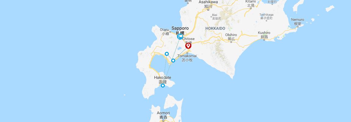 Tour Route: Chitose - Noboribetsu - Lake Toya - Hakodate - Sapporo