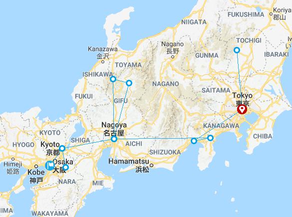 Tour Route: Tokyo - Nikko - Tokyo - Mt.Fuji - Hakone - Nagoya - Takayama - Shirakawa-go - Nagoya - Kyoto - Nara - Kyoto - Osaka
