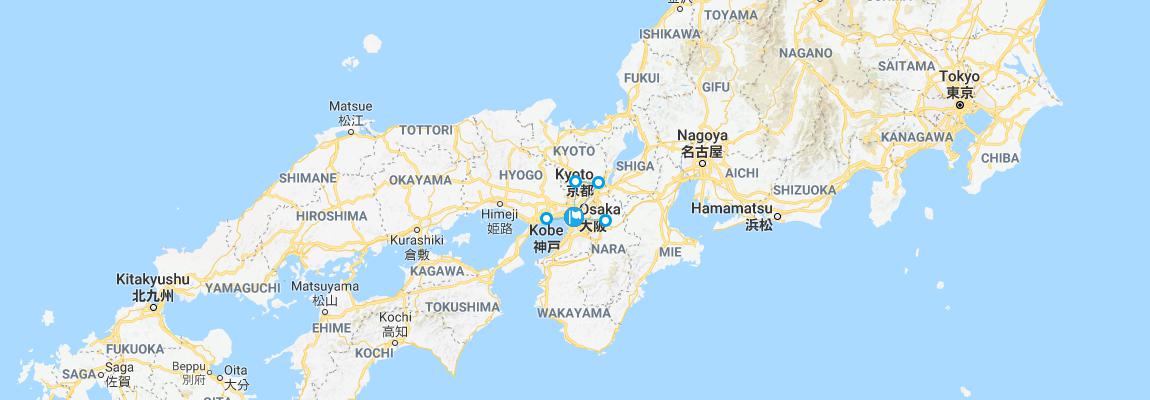 Tour Route: Osaka - Nara - Osaka - Kobe - Osaka - Kyoto - Arashiyama - Osaka