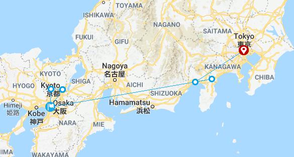 Tour Route: Tokyo - Mt.Fuji - Hakone - Osaka - Arashiyama - Kyoto - Osaka - Kyoto - Osaka
