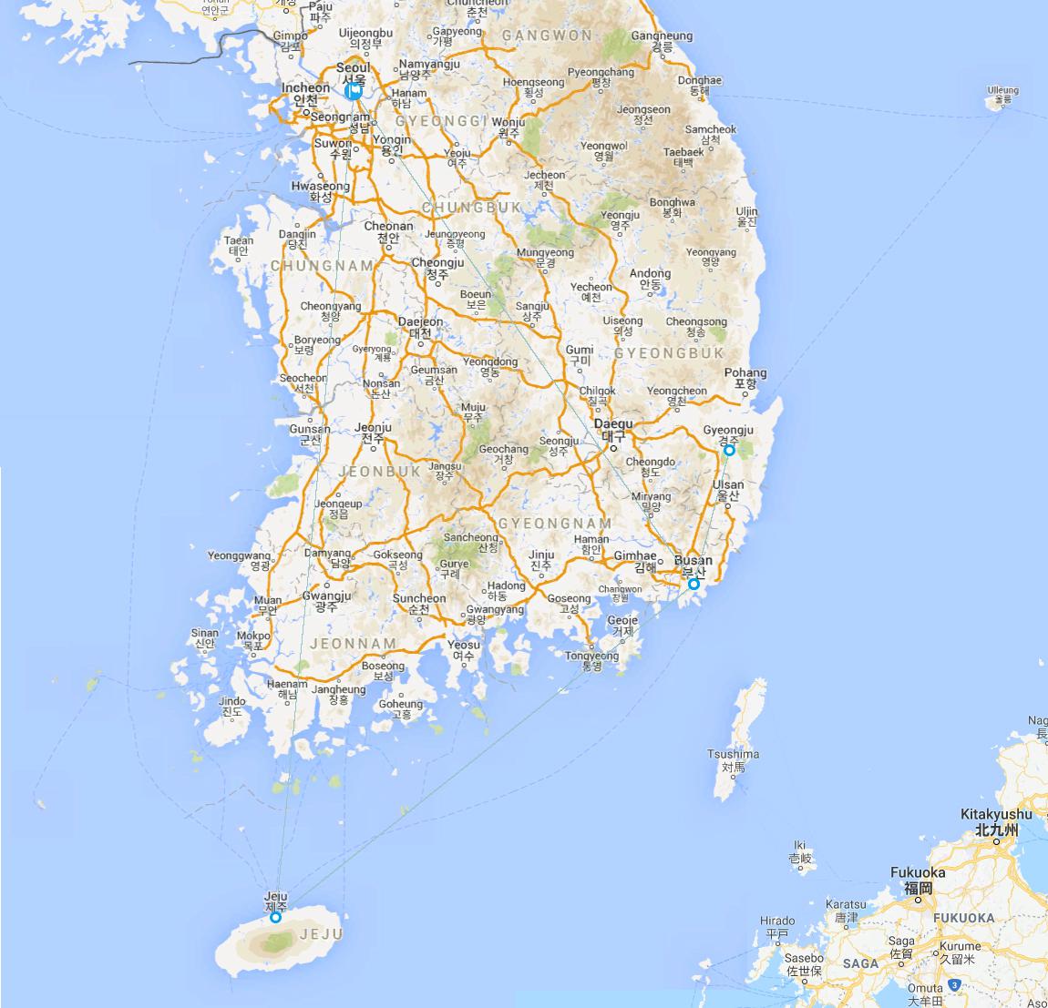 Tour Route: Seoul - Busan - Gyeongju - Busan - Jeju - Seoul